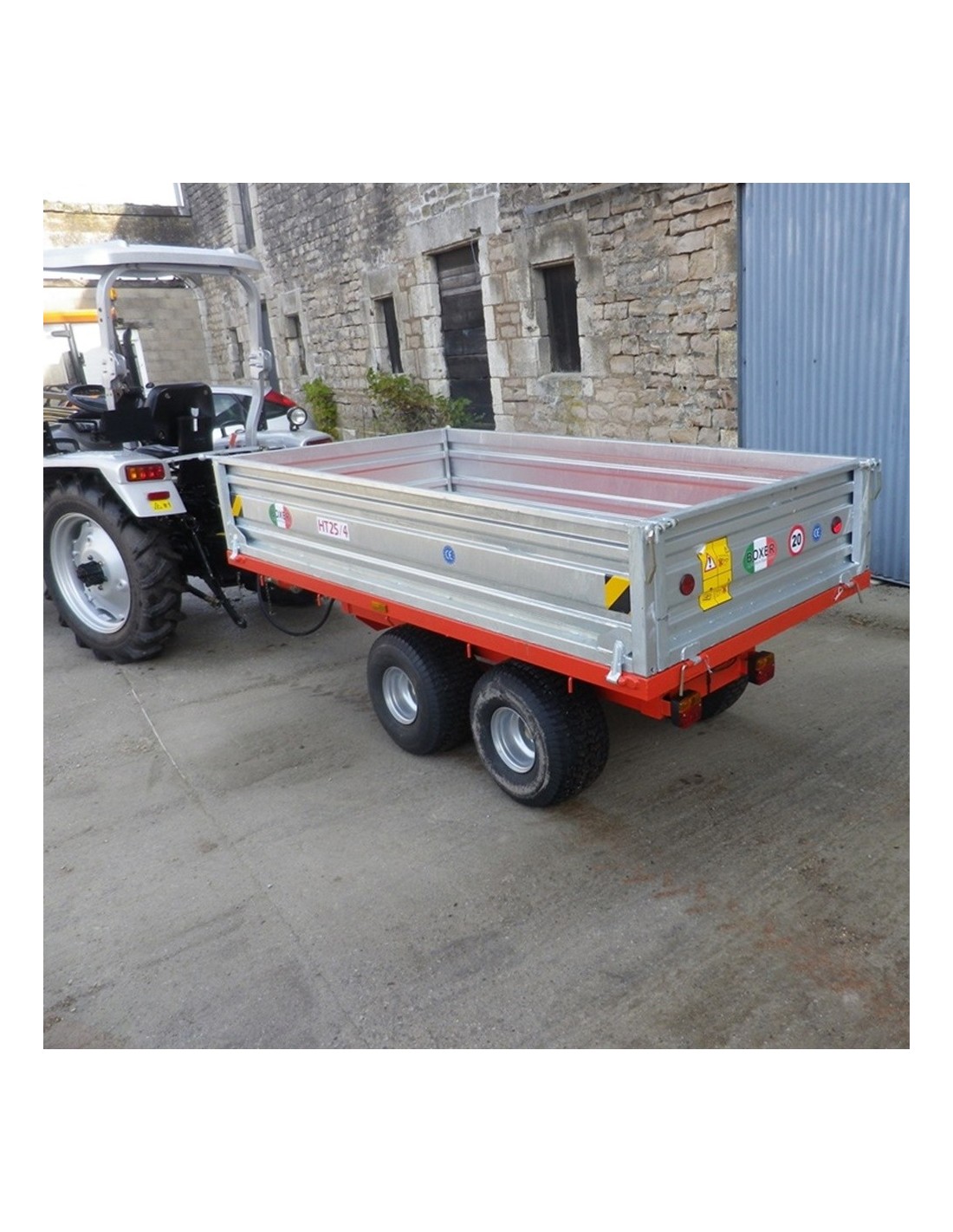 La remorque BOXER HT 25/4 double essieu est conçue pour les tracteurs à partir de 20 CV.